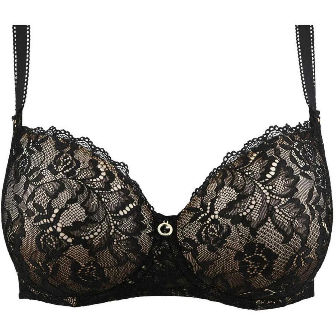 Les bonnets du soutien-gorge sont formés d’une belle dentelle noire au motif de rose, renforcés par des coques beiges qui contrastent avec la dentelle romantique. Les coques vont vous offrir un meilleur maintien et beaucoup de confort.