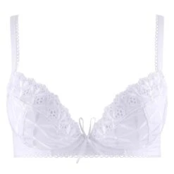Les bonnets sont doublés de tulle pour garder le secret de la beauté de votre féminité. Le décolleté plongeant est sublimé par une poitrine rehaussé au naturel et une bande élastique amovible. L’entre-sein est orné d’un nœud en satin et d’un pendentif en bronze.