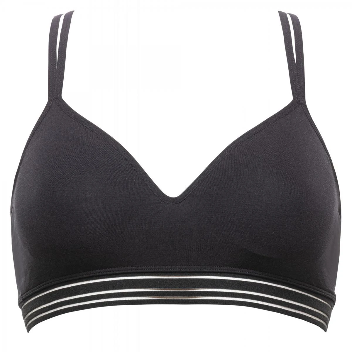Cette brassière sans armatures est conçue dans une maille douce et extensible épousant naturellement le galbe de votre poitrine. De fines coques permettent également de maintenir votre poitrine et lui offrir un effet rebondi.