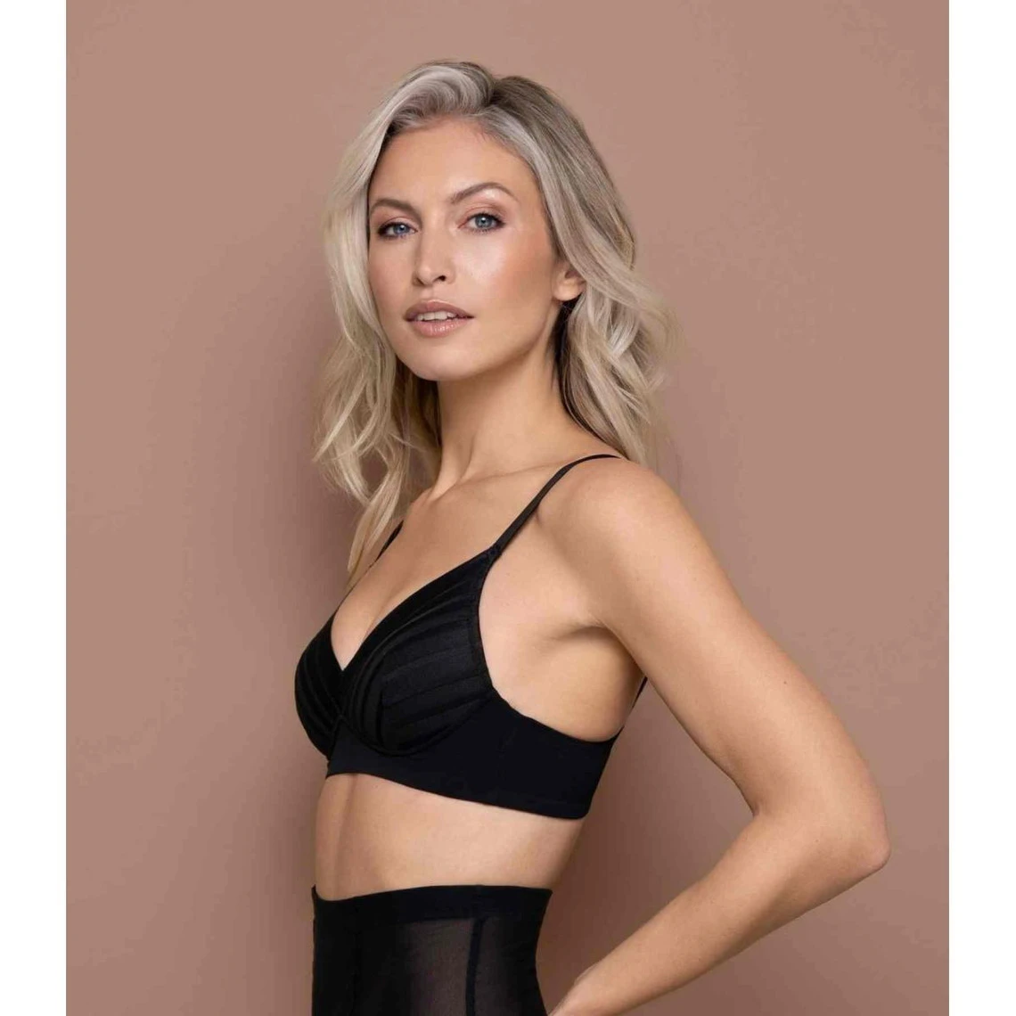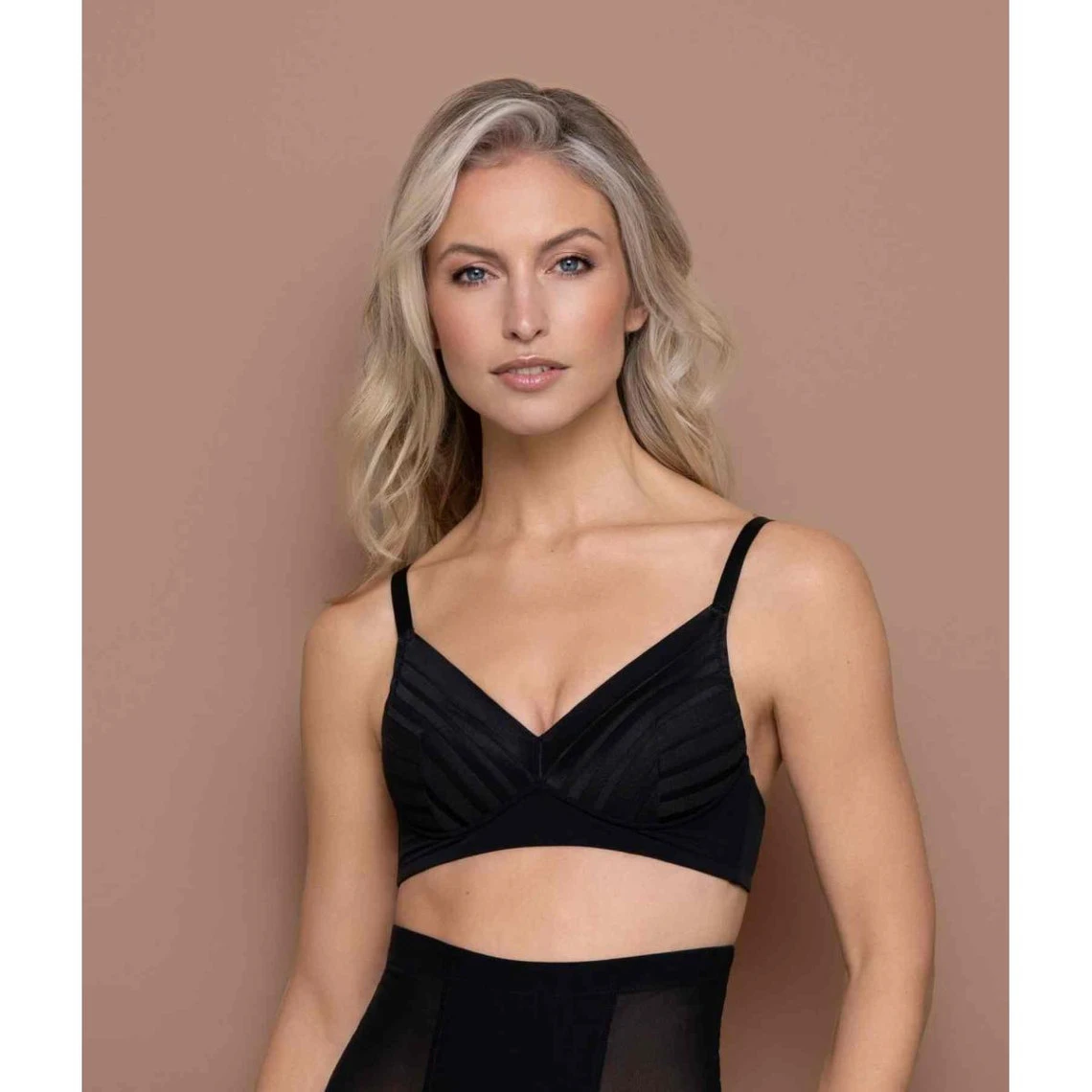 Craquez pour la légèreté et le confort de ce Soutien-gorge triangle sans armatures Bra Top Wire Free Lace noir de la collection Powermesh Shapewear de Bye Bra.