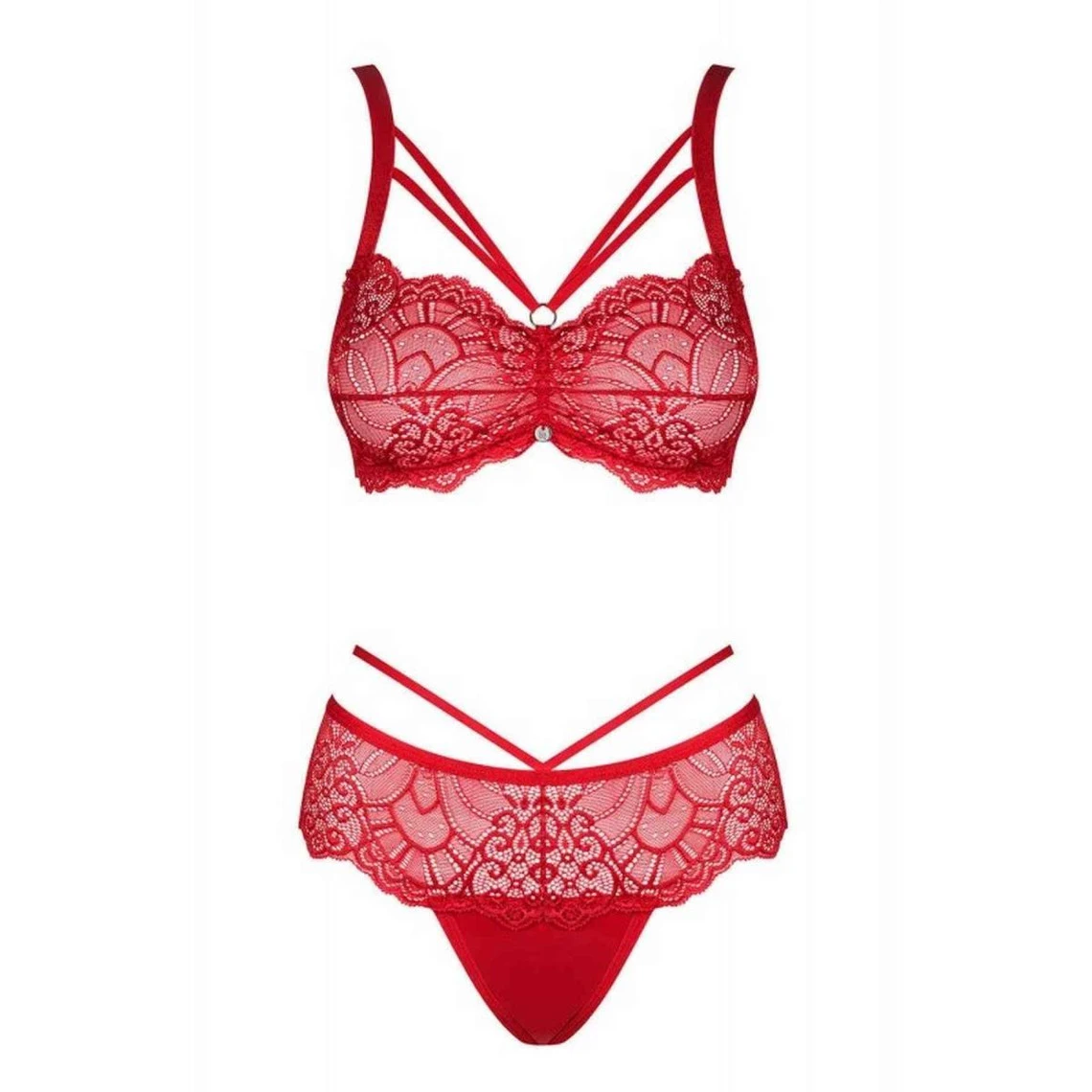 Découvrez le splendide Ensemble 2 pièces – Soutien-gorge balconnet et shorty string – Rouge de la marque Obsessive appartenant à la collection Loventy.