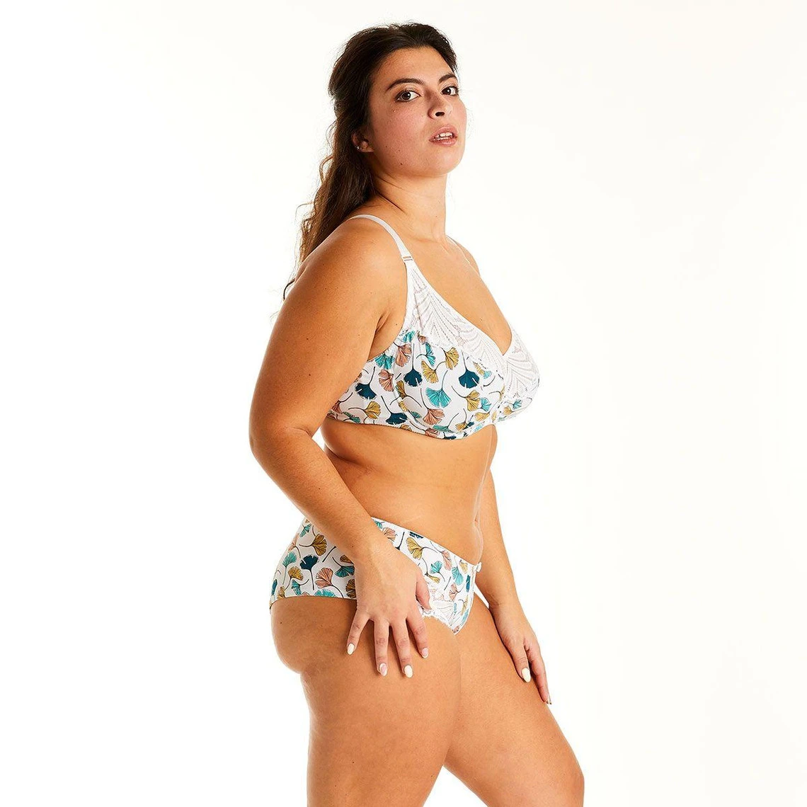 Matière principale : 90% polyamide 10% élasthanne. Dentelle : 90% polyamide 10% élasthanne. Doublure bonnet : 100% polyamide. Doublure côté : 92% polyamide 8% élasthanne.