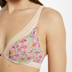 Ses bonnets moulés et à coques dessinent un joli arrondi aux seins. Les armatures assurent un maintien parfait. On adore les imprimés de fleurs revisités et la dentelle graphique qui donnent un esprit féminin à ce dessous.