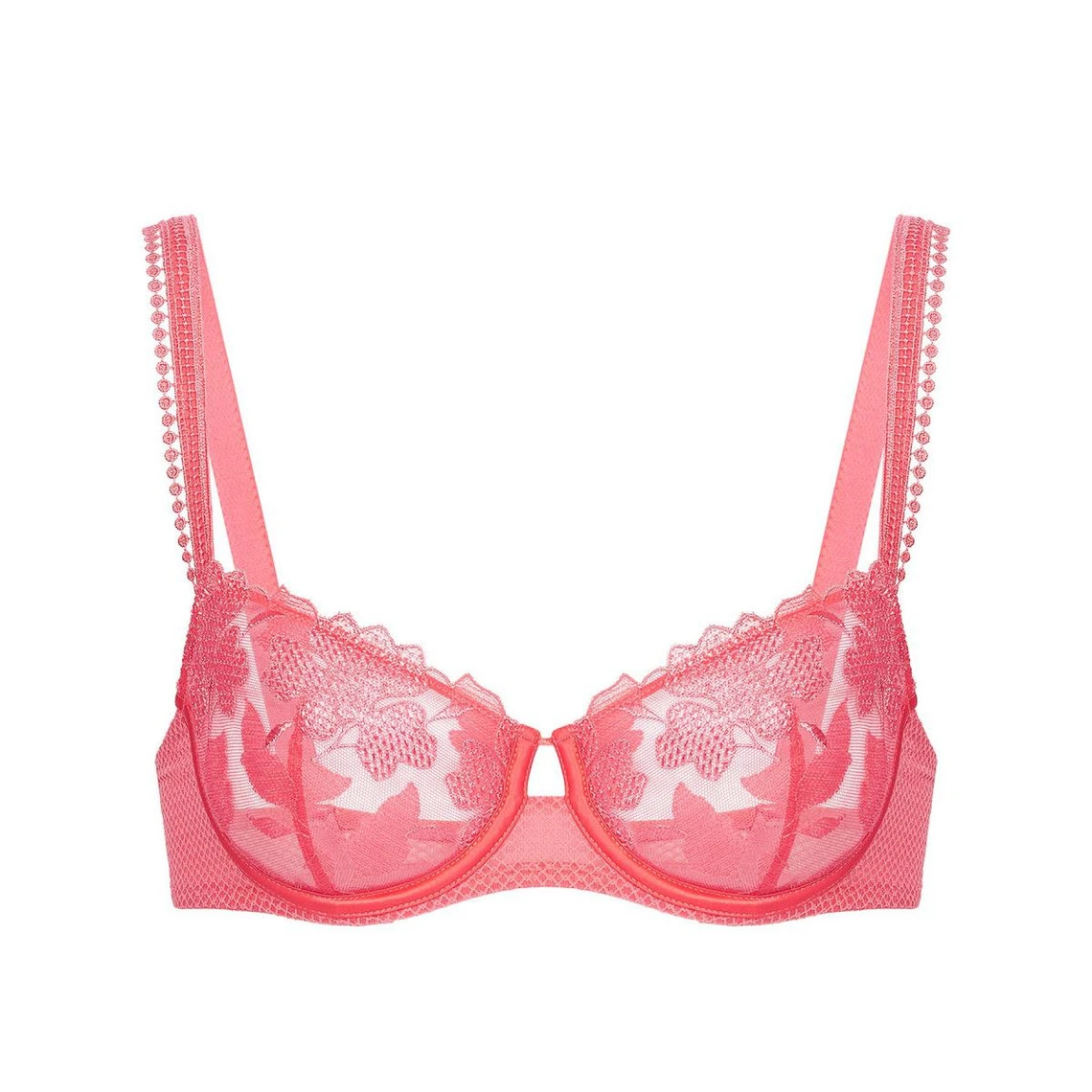 Le Soutien-gorge corbeille armatures – Rose est composĂ© de bonnets en tulle brodĂ© partiellement doublĂ©, dĂ©voilant ainsi subtilement la poitrine nue au travers. La prĂ©sence d’armatures solides apportent un bon maintien de la poitrine ainsi qu’un joli galbe naturellement rebondi.