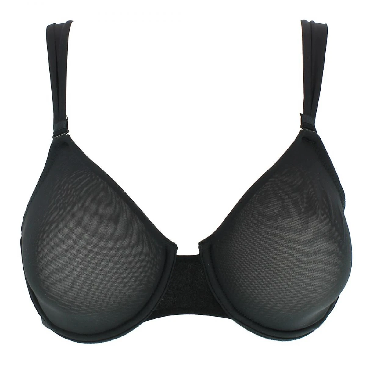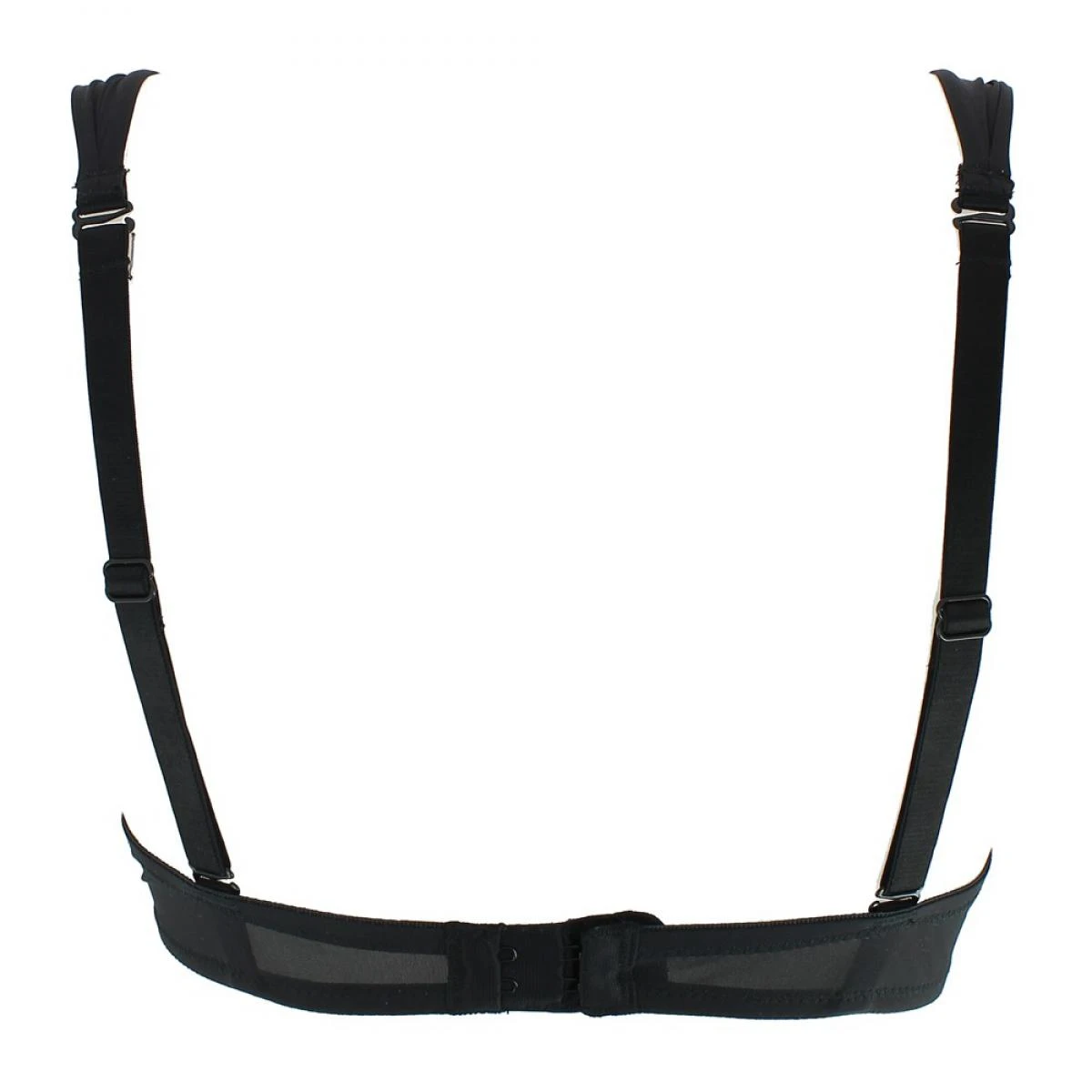 Un modèle tout simple, bien emboitant et qui vous assurera un très bon niveau de maintien. Les bonnets mousse vous assureront un décolleté avantageux et maîtrisé. Les bonnets sont noirs et lisses pour une invisibilité totale sous vos vêtements sombres. Même fins, un peu moulants ou transparents, il saura se faire tout discret. Avec sa coupe intemporelle, il s’imposera rapidement comme un grand classique de votre tiroir de lingerie!On craque pour les détails travaillés qui font de ce modèle simple, un soutien-gorge chic et raffiné. Un touche de satin vient apporter un peu de luminosité au niveau de l’entre-seins. Les bretelles sont drappées et se font plus épaisses au fur et à mesure que l’on avance vers l’épaule, elles plissent donc légèrement pour un rendu résolument élégant.Le tour de dos est en tulle pour donner une touche de légerté