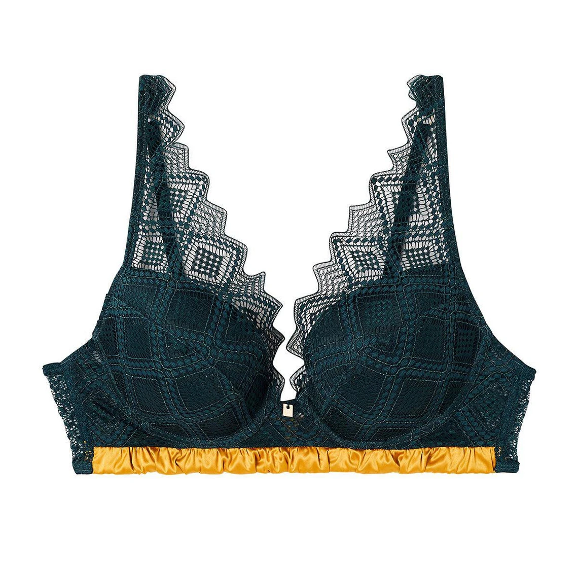 Il allie des bonnets doublĂ©s Ă une dentelle graphique moderne pour un dĂ©colletĂ© sĂ©duisant. DotĂ© d’armatures, il offre beaucoup de maintien Ă la poitrine. On adore la bande plissĂ©e Ă l’avant et le nĹ“ud satinĂ© au dos. Ces dĂ©tails bien pensĂ©s accentuent le charme de ce dessous. Le bijou dorĂ© Ă l’entre-sein apporte la petite dose de glamour qu’on aime tant.