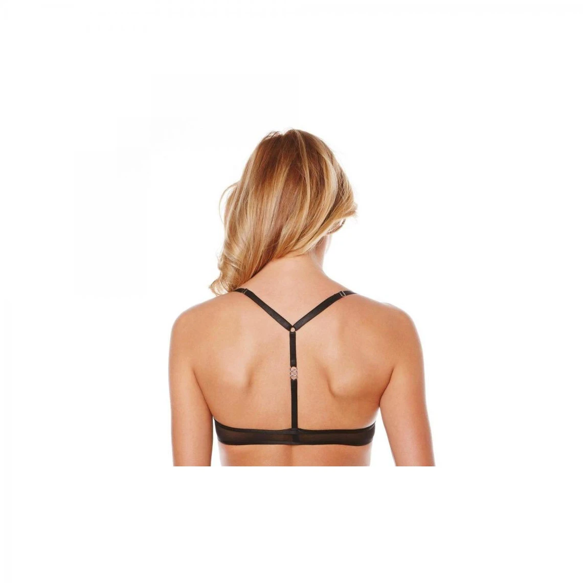 Soutien-gorge coque push-up, ouverture à l’avant grâce à une boucle fantaisie. Bonnets en microfibre recouverte de résille noire. Galon de dentelle en haut bonnet. Bretelles spaghettis élastiquées et réglables, agrémentées de boucles métal. Dos nageur.